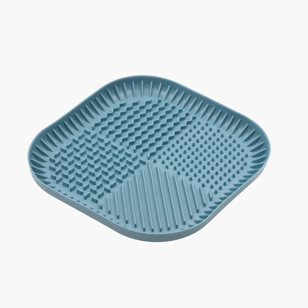 Виріб виготовлено з м’якого пластичного матеріалу, що добре прикріплюється до підлоги, завдяки чому не ковзає. Килимок для злизування ласощів і їжі має заспокійливий та розслабляючий ефект для домашніх тварин.