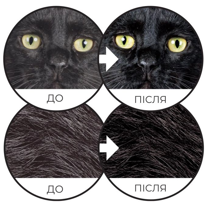 - Позитивно впливає на структуру шерсті, завдяки чому вона виглядає густою та блискучою. Сприяє зміцненню імунної системи.