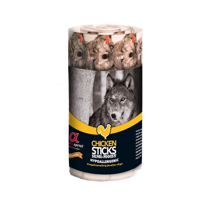 Палички з куркою для собак Alpha Spirit Chicken Sticks – це беззернові напіввологі ласощі, виготовлені з 85% свіжого м'яса та риби. Розроблені з урахуванням потреб дорослих собак різних порід, підходять улюбленцям із чутливим травленням. Ласощі мають форму зручних паличок, що робить їх ідеальними для частування вихованця між прийомами їжі, як винагороду під час тренувань або як корисний перекус.