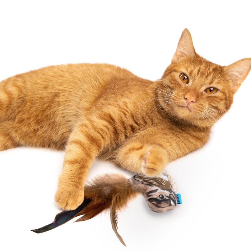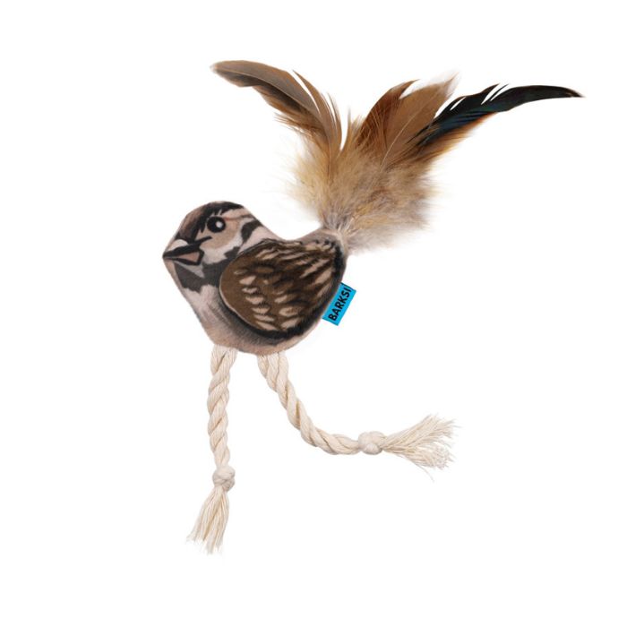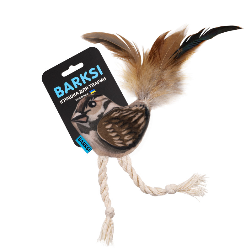 Іграшка для котів Barksi у формі горобця з дзвіночком і пір’ям – це поєднання м’якості, яскравого дизайну та природної привабливості, що пробуджує в кота мисливські інстинкти та стимулює активність. Завдяки зручній формі та легкій вазі іграшку легко підкидати, штовхати лапкою чи носити в зубах, що робить гру динамічною й захопливою. Усередині іграшки є дзвіночок, який створює мелодійний звук під час руху, а пір’я додає реалістичності, пробуджуючи природне бажання кота переслідувати «здобич».