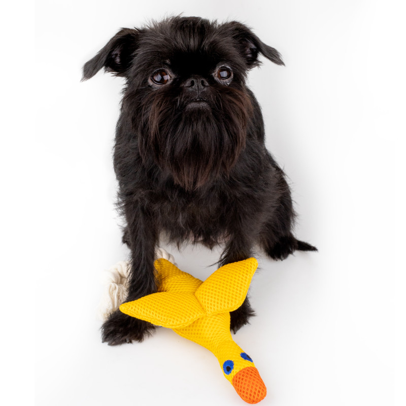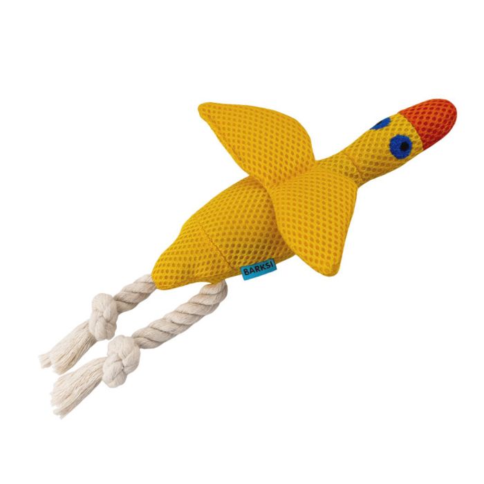 Іграшка для собак у формі каченяти Barksi Дентал – це поєднання гри, тренування та догляду за зубами вашого улюбленця. Створена спеціально для активних собак і цуценят, які люблять тягнути, кусати та носити іграшки. Приємна на дотик 3Д сітка у поєднанні з міцним канатом забезпечує різноманітність відчуттів під час гри, а вбудована пищалка підтримує інтерес і більше залучає вихованця гратися з каченям.