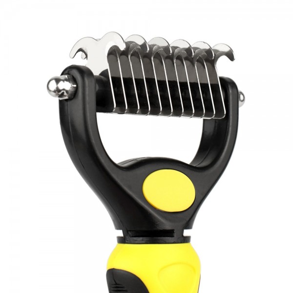 Робоча частина ковтунорізу виготовлена з високоякісної нержавіючої сталі, що гарантує довговічність і стійкість до корозії. Леза мають закруглені краї, тому не травмують шкіру та не виривають шерсть. Двостороння конструкція дає змогу обирати потрібний рівень інтенсивності: одна сторона має менше зубців для розплутування ковтунів, інша – більше зубців для делікатного розчісування й видалення підшерстка.