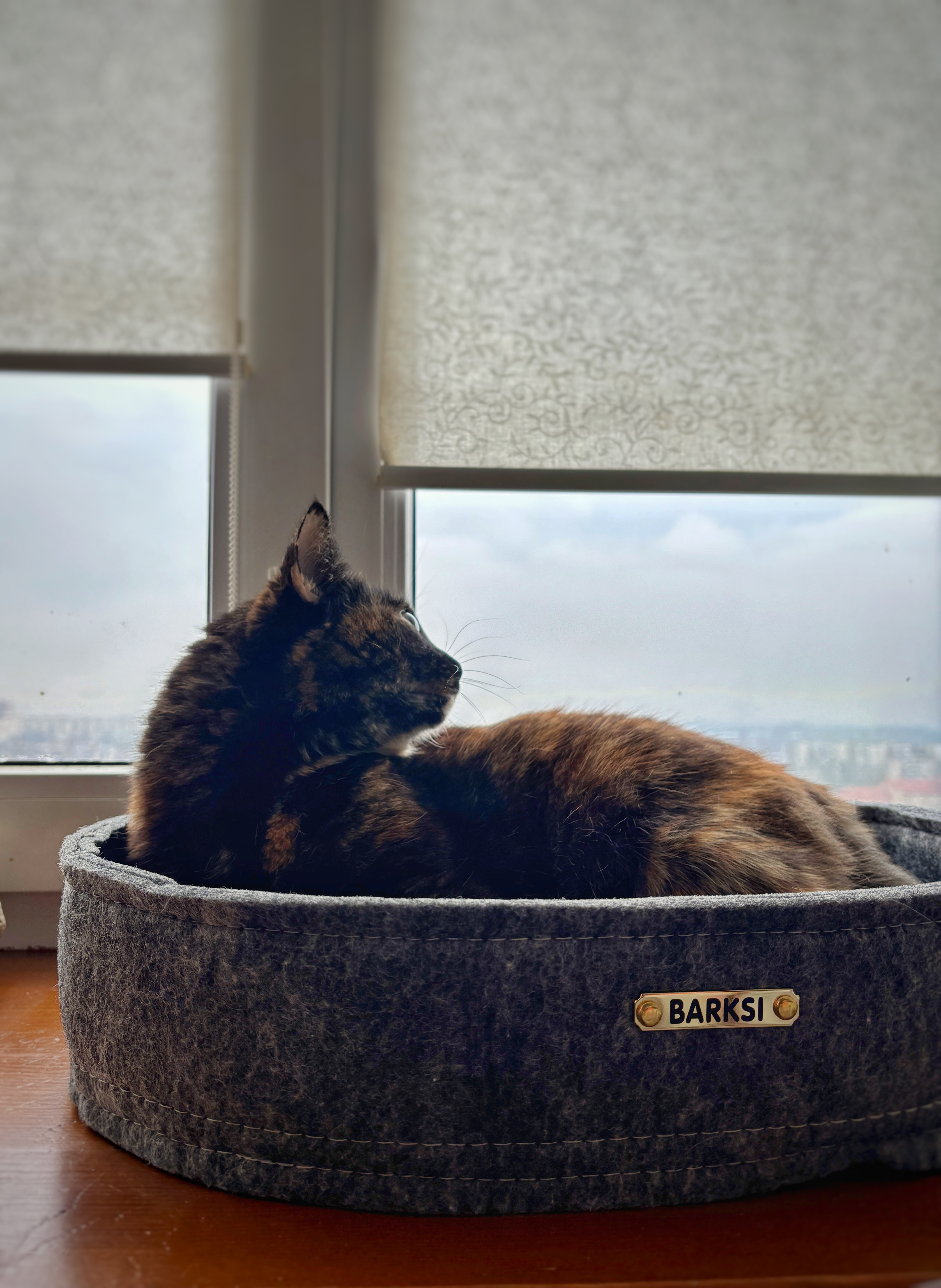 • Високоякісна повсть – натуральний матеріал з добрими теплоізоляційними властивостями. Допомагає зберігати тепло, тримає форму, не деформується та довго зберігає естетичний вигляд. Натуральна структура повсті зазвичай не спричиняє алергій і не подразнює шкіру, що робить лежак безпечним для тваринок.