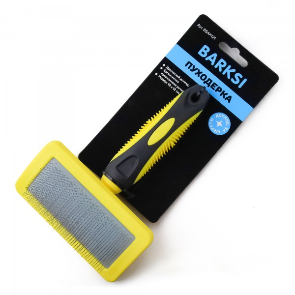 Щітка-пуходерка Barksi для догляду за шерстю та підшерстком домашніх улюбленців – професійний інструмент для ефективного та делікатного грумінгу. Виготовлена з міцного пластику та оснащена короткими сталевими зубцями, дбайливо видаляє надлишки шерсті та підшерстка, не травмуючи шкіру тварини. Легка масажна дія зубців стимулює кровообіг і сприяє здоровому вигляду шерсті, надаючи їй об’єму та блиску.