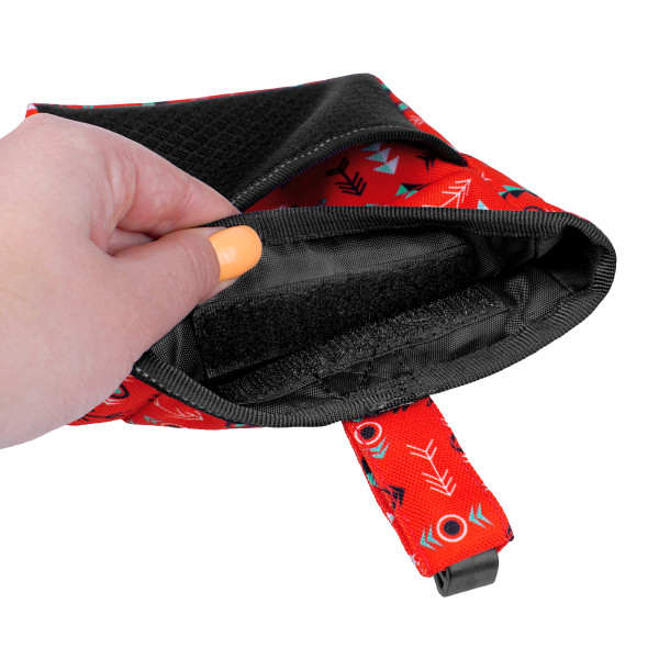 Завдяки міцному затискачеві-кліпсі сумку для ласощів можна швидко прикріпити до пояса, кишені чи сумки, залишаючи руки вільними. На передній частині – розташована додаткова кишеня, в яку зручно покласти пакетики для прибирання за собакою, ключі або дрібні особисті речі.