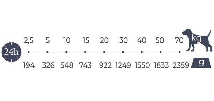- Корм не містить штучних барвників і консервантів, відповідає природним потребам собак і забезпечує надійну основу для здорового, активного та збалансованого життя.