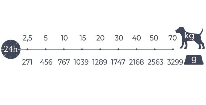 - Корм забезпечує делікатну, але повноцінну підтримку організму собак із чутливим травленням та літніх тварин, сприяючи їхньому комфорту, здоров’ю та активному довголіттю.