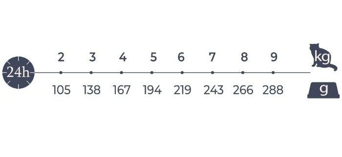 - Формула адаптована для стерилізованих і малорухливих котів, допомагаючи підтримувати оптимальну вагу та загальний баланс організму.