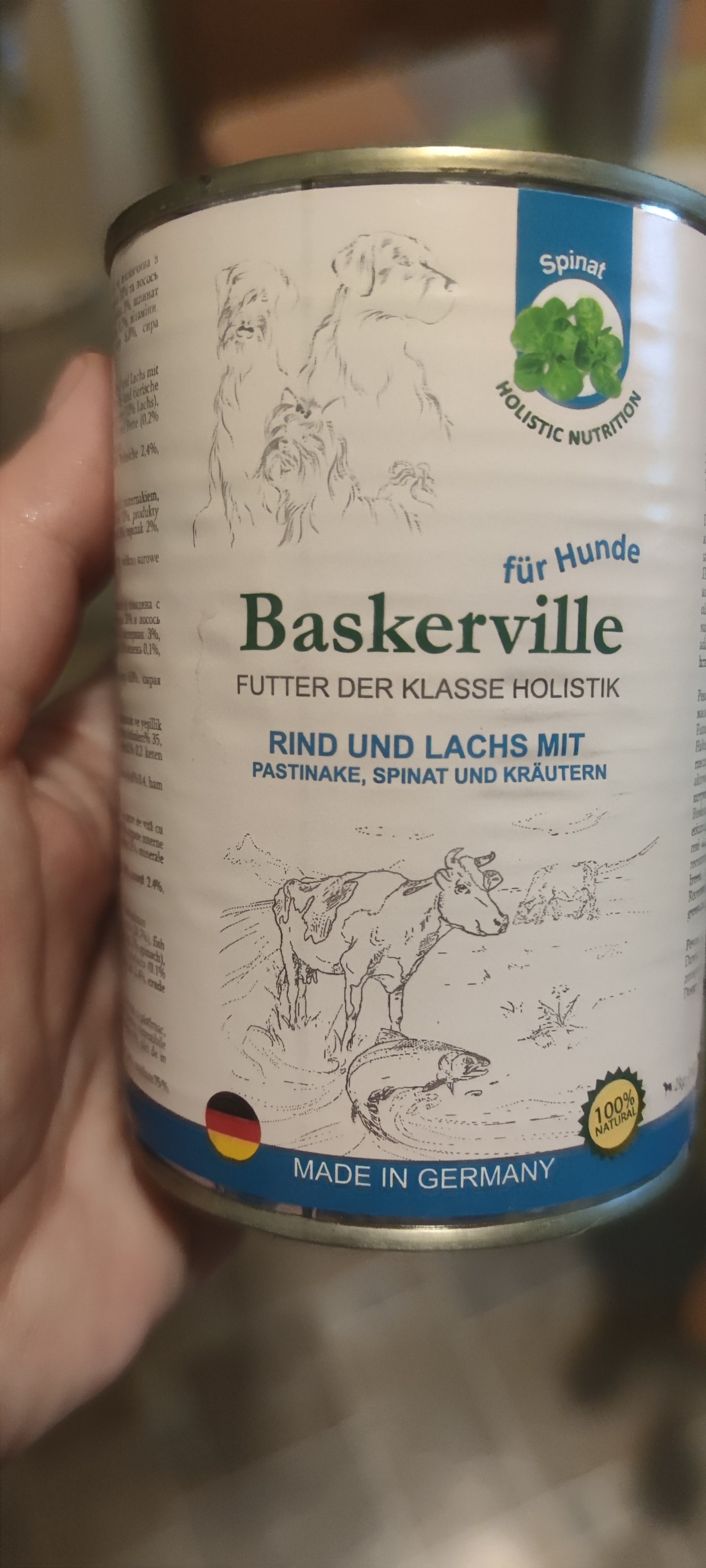 Консервований корм для собак Baskerville з лососем та яловичиною – це повноцінне збалансоване харчування для собак із нормальною активністю, створене для підтримки загального здоров’я, гарного самопочуття та енергійності тварини. Завдяки унікальній рецептурі та натуральним інгредієнтам корм забезпечує організм необхідними поживними речовинами, сприяє правильному обміну речовин, підтримує здорову шкіру та блискучу шерсть, а також допомагає забезпечити енергію для активного життя.