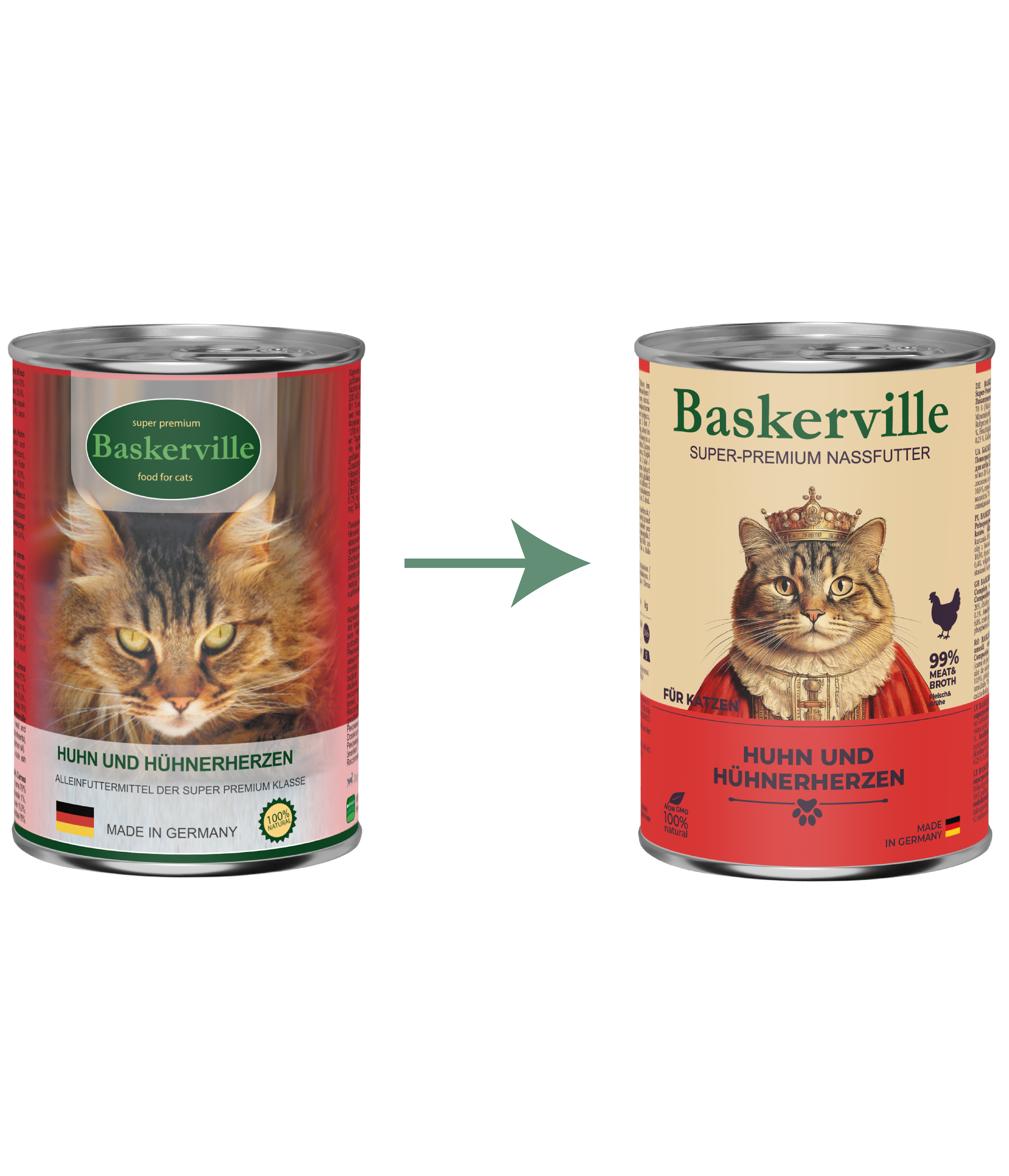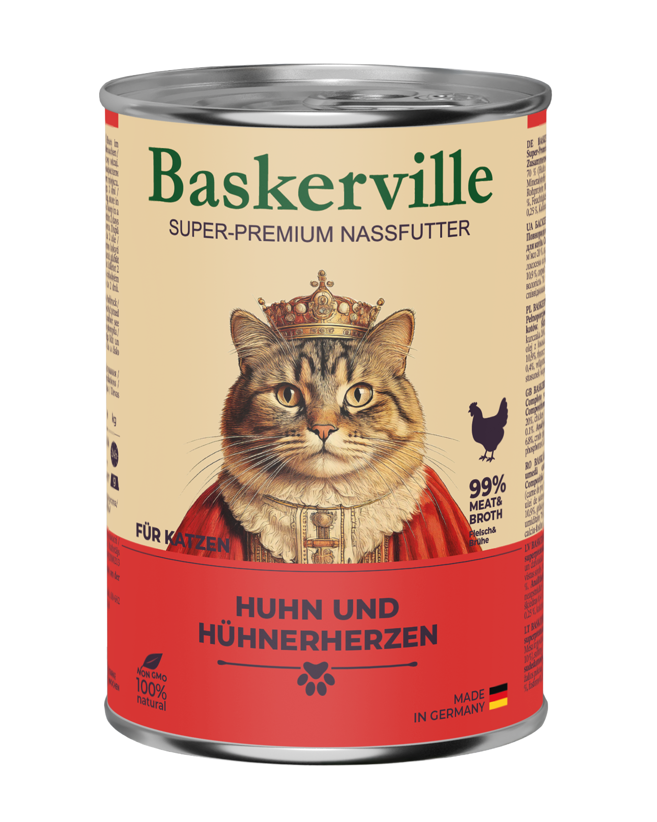 Консервований корм для котів Baskerville з м’ясом курки та сердечками – це повноцінне збалансоване харчування для котів із нормальною активністю, створене для підтримки загального здоров’я, гарного самопочуття та енергійності тварини. Завдяки унікальній рецептурі та натуральним інгредієнтам корм забезпечує організм необхідними поживними речовинами, сприяє правильному обміну речовин, підтримує здорову шкіру та блискучу шерсть, а також допомагає забезпечити енергію для активного життя.