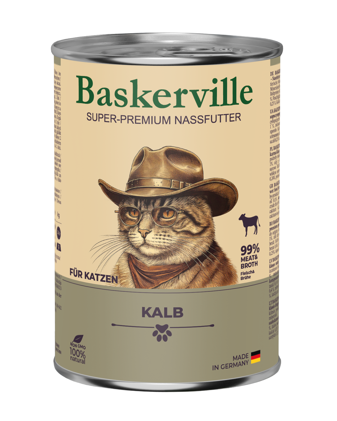 Консервований корм для котів Baskerville з телятиною – це повноцінне збалансоване харчування для котів із нормальною активністю, створене для підтримки загального здоров’я, гарного самопочуття та енергійності тварини. Завдяки унікальній рецептурі та натуральним інгредієнтам корм забезпечує організм необхідними поживними речовинами, сприяє правильному обміну речовин, підтримує здорову шкіру та блискучу шерсть, а також допомагає забезпечити енергію для активного життя.
