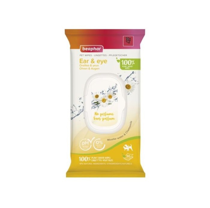 Вологі серветки для собак і котів Beaphar Pet Wipes Ear & Eye – створені для делікатного очищення очей та вух улюбленців. Допомагають підтримувати гігієну та здоров’я цих чутливих зон, видаляючи пил, бруд і сльози, при цьому не подразнюючи шкіру та слизові оболонки.