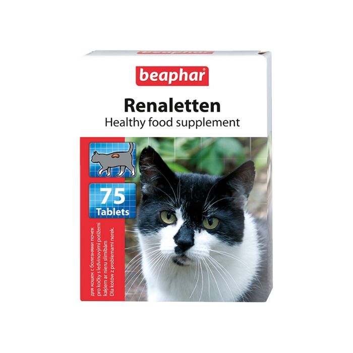 Вітамінні ласощі для котів Beaphar Renaletten – спеціальна дієтична добавка котів з проблемами нирок і літніх улюбленців. Допомагає підтримувати нормальну функцію нирок, особливо при хронічній нирковій недостатності, та профілактує сечокам’яну хворобу.