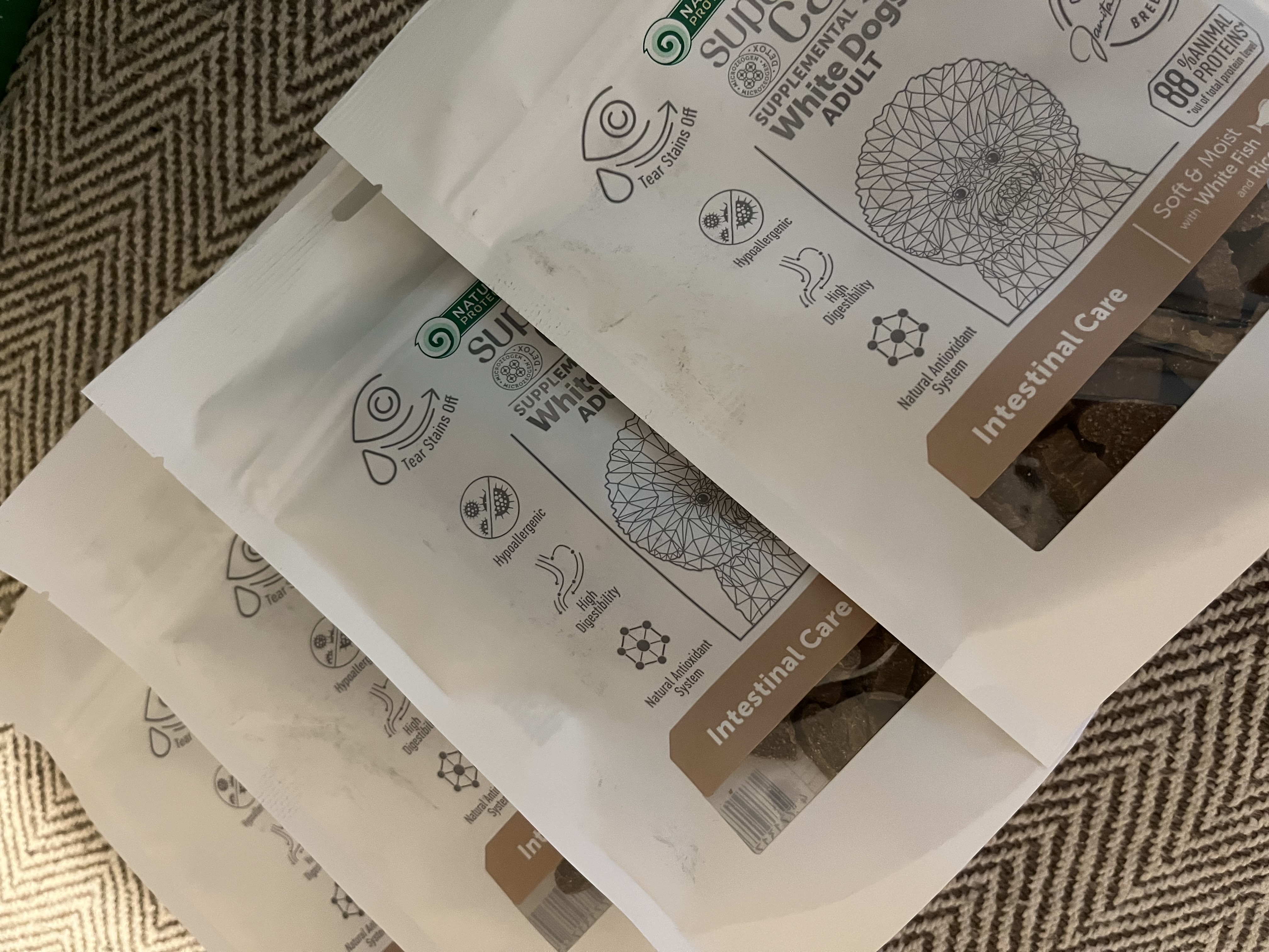 Корми з лінійки Nature’s Protection Superior Care White Dogs підходять усім собакам, незалежно від забарвлення шерсті та не впливають на її колір. Ця серія кормів була розроблена спеціально для усунення коричневих плям від сліз, які найпомітніші саме на білій і світлій шерсті вихованців. Проте включення цього корму до раціону собак із темним забарвленням шерсті не призводить до її висвітлення або зміни кольору.