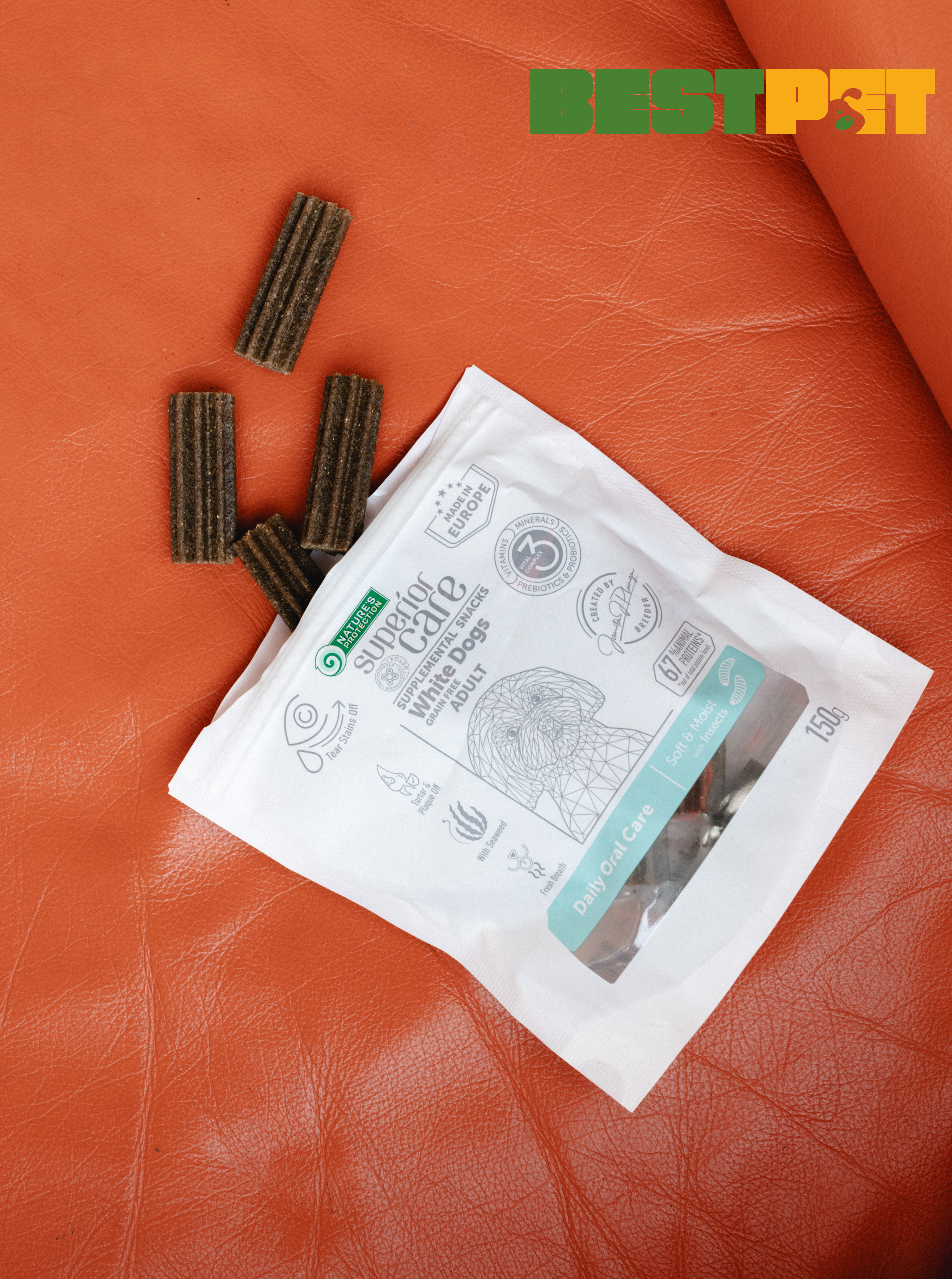 Беззернові ласощі Nature's Protection Superior Care White Dogs Grain Free Daily Oral Care – це високоякісна добавка до корму, призначенадля дорослих собак усіх порід. Це чудовий вибір, щоб показати любов до вашого улюбленця й водночас забезпечити його щоденною нормою необхідних вітамінів, мінералів, пребіотиків та пробіотиків.