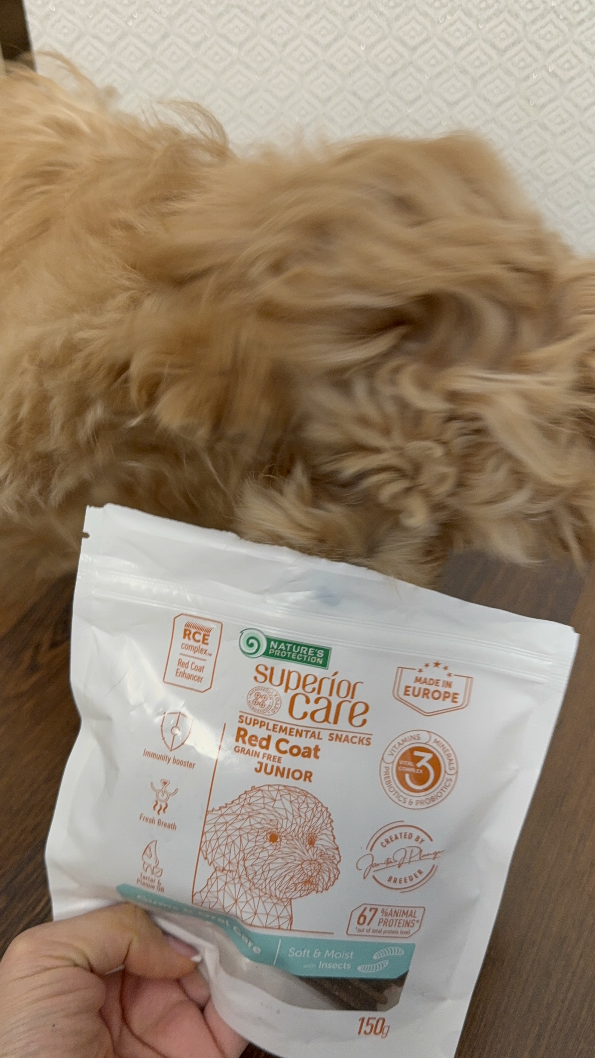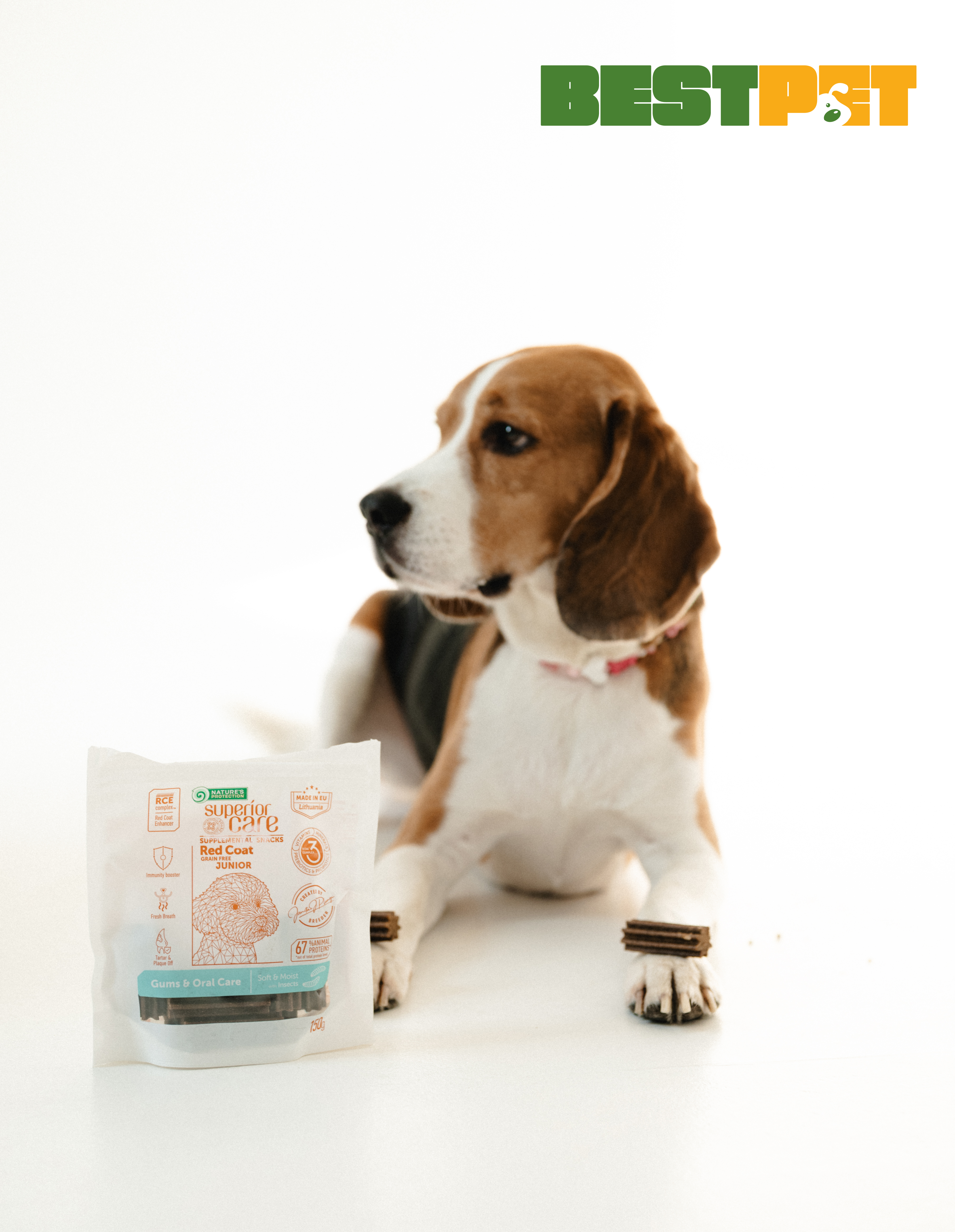 Основним джерелом білка в цих ласощах є протеїн комах. Це екологічне джерело білка, оскільки потребує менше землі, води та корму, ніж традиційна домашня худоба, та є хорошим джерелом високоякісного білка, а також незамінних амінокислот, вітамінів і мінералів. Перероблений білок комах вважається гіпоалергенним, що робить його хорошим вибором для собак із харчовою чутливістю або алергією. Ці функціональні снеки мають більш вологу та м'яку текстуру, ніж звичайні ласощі. Більш вологі продукти розкривають натуральний аромат, що робить їх улюбленими навіть для найвибагливіших домашніх вихованців. Унікальна технологія виробництва та мінерально-натрієвий поліфосфат, що міститься в ласощах, мають антибактеріальні властивості, які допомагають зменшити кількість бактерій, тим самим зменшуючи неприємний запах у роті собаки. Функціональні снеки не містять інгредієнтів зернового походження, кукурудзи та соєвих продуктів, які можуть викликати алергічні реакції.