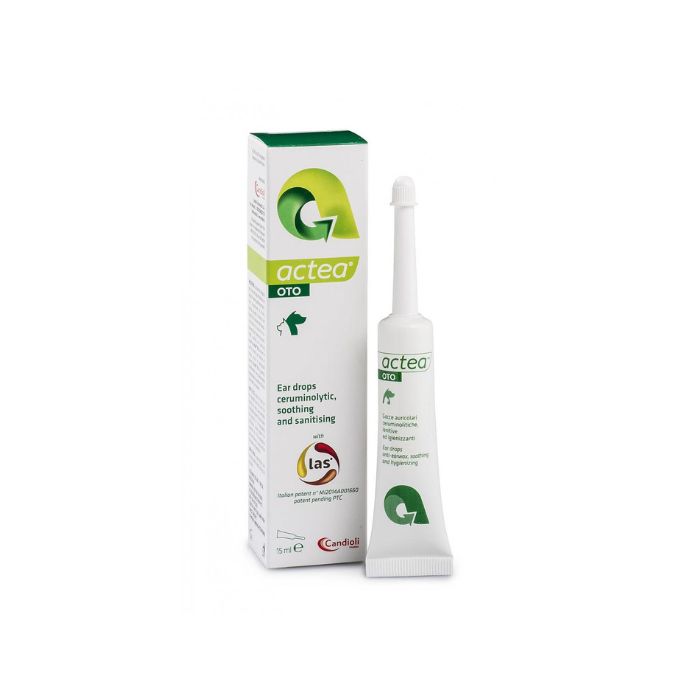 Candioli Actea Oto – ефективна емульсія для отологічного застосування для котів і собак, виготовлена за ексклюзивною формулою LAS (запатентована суміш натуральних молекул), яка ефективно контролює запалення, свербіж, бактеріальний і грибковий ріст.