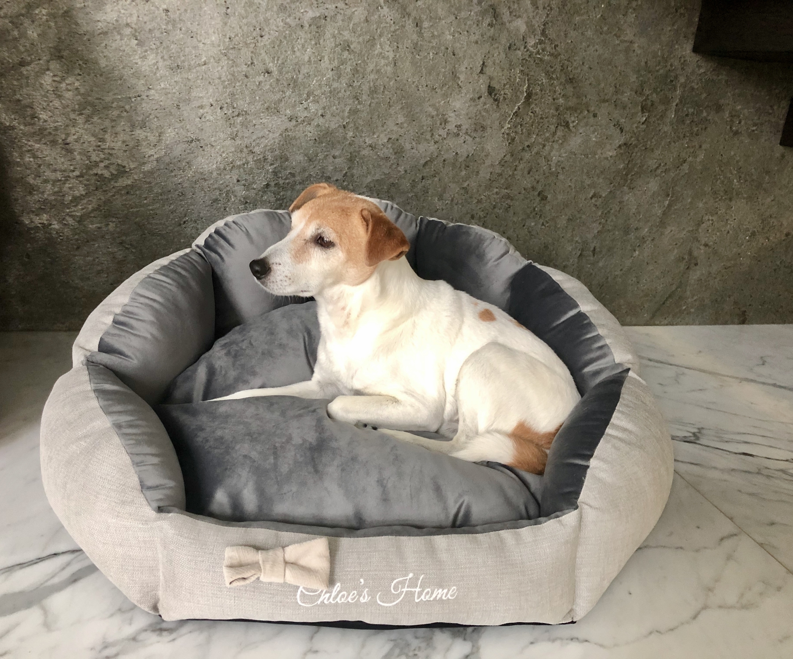 Затишний матеріал з видимими швами не залишить нікого байдужим. Красиві, милі кольори – рожевий або сірий – пасуватимуть будь-якому інтер'єру. Внутрішній матеріал виглядає справді розкішно: елегантна вишивка та зйомна краватка-метелик додають додаткового шарму персональному місцю вашого вихованця. Ви можете придбати додаткові краватки-метелики та змінювати їх. Всередині лежанки – м'який матеріал, схожий на оксамит, а з іншого боку подушки – м'яка ковдра, що буде огортати тіло вашого пухнастого друга.