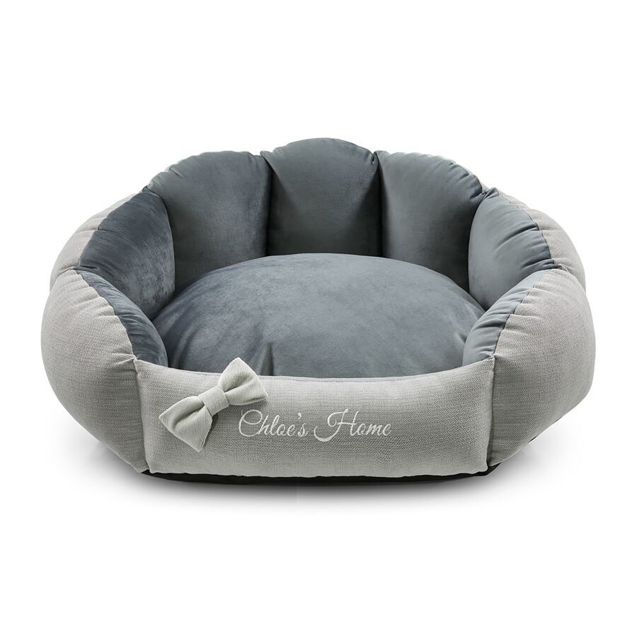 Затишний матеріал з видимими швами не залишить нікого байдужим. Красиві, милі кольори – рожевий або сірий – пасуватимуть будь-якому інтер'єру. Внутрішній матеріал виглядає справді розкішно: елегантна вишивка та зйомна краватка-метелик додають додаткового шарму персональному місцю вашого вихованця. Ви можете придбати додаткові краватки-метелики та змінювати їх. Всередині лежанки – м'який матеріал, схожий на оксамит, а з іншого боку подушки – м'яка ковдра, що буде огортати тіло вашого пухнастого друга.