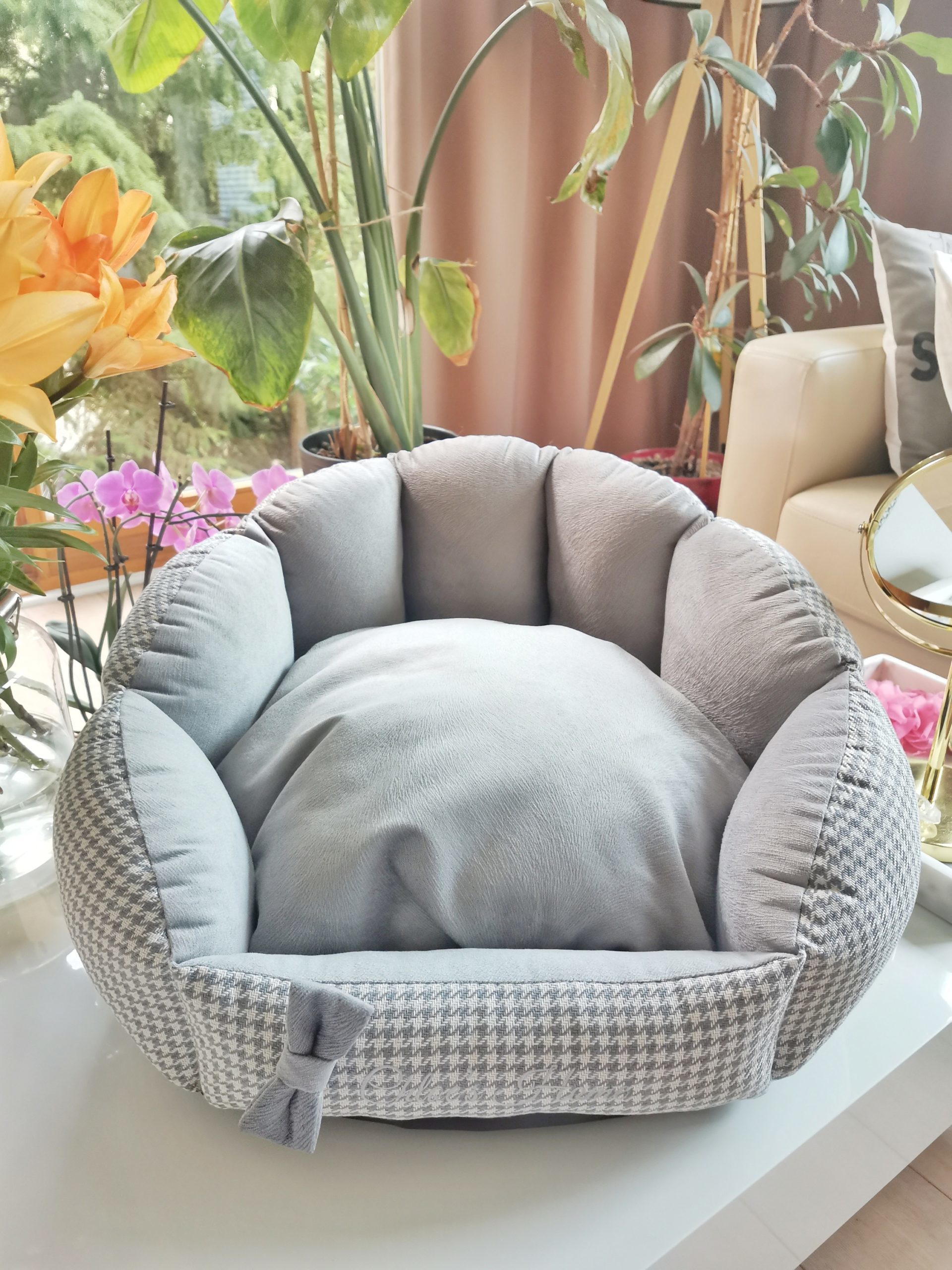 Внутрішній матеріал виглядає дійсно розкішно. Він не вбирає так багато пилу та води, як традиційний текстиль. Завдяки цьому лежанка довше зберігатиме привабливий зовнішній вигляд і залишатиметься чистою. Елегантна вишивка та знімний метелик додають персональному місцю вашого пухнастика додаткового шарму.