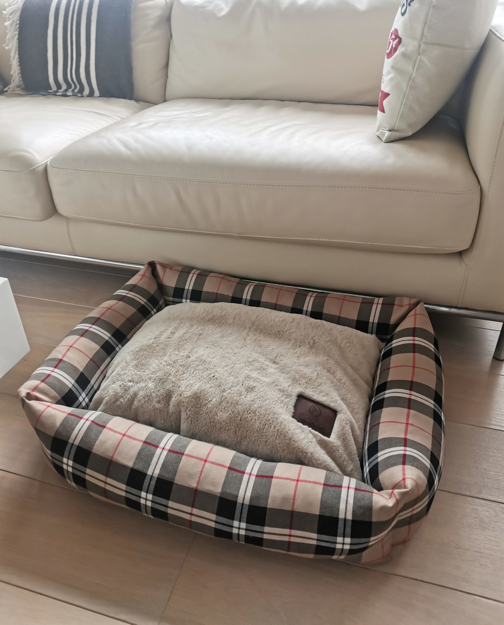 Лежаки DUBLIN виготовлені з красивих матеріалів. Зовнішнє матове оздоблення має видиму структуру та благородний картатий принт, а всередині дуже практичний матеріал – оксамит, який менше поглинатиме вологу та пил, ніж традиційний текстиль. Вони чудово гармоніюють разом.