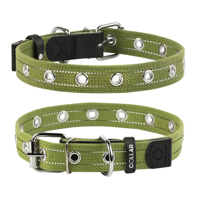 Collar Нашийник для собак бавовняна тасьма брезент одинарний, M, ширина 25 мм, довжина 53 см, зелений - 1