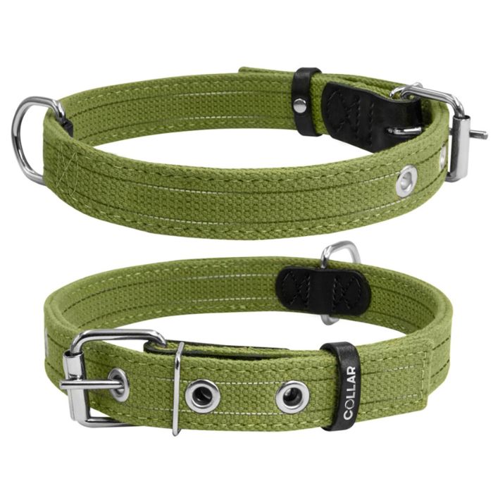 Collar Нашийник для собак бавовняна тасьма брезент подвійний, M, ширина 25 мм, довжина 41-53 см, зелений
