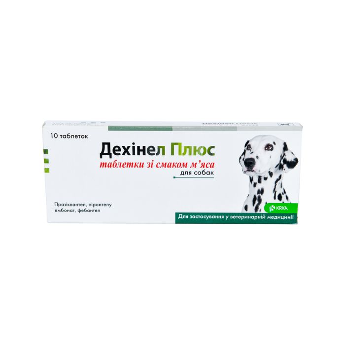 Дехінел Плюс таблетки зі смаком м’яса для собак – антигельмінтний препарат комбінованої дії, що містить празіквантел, пірантелу ембонат та фебантел.