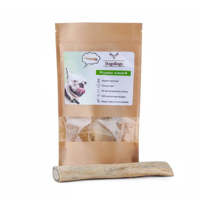 - М’які оленячі роги з розміром 20 см підходять улюбленцям маленьких і середніх порід, з вагою від 5 до 15 кг – з низьким рівнем гризучості;