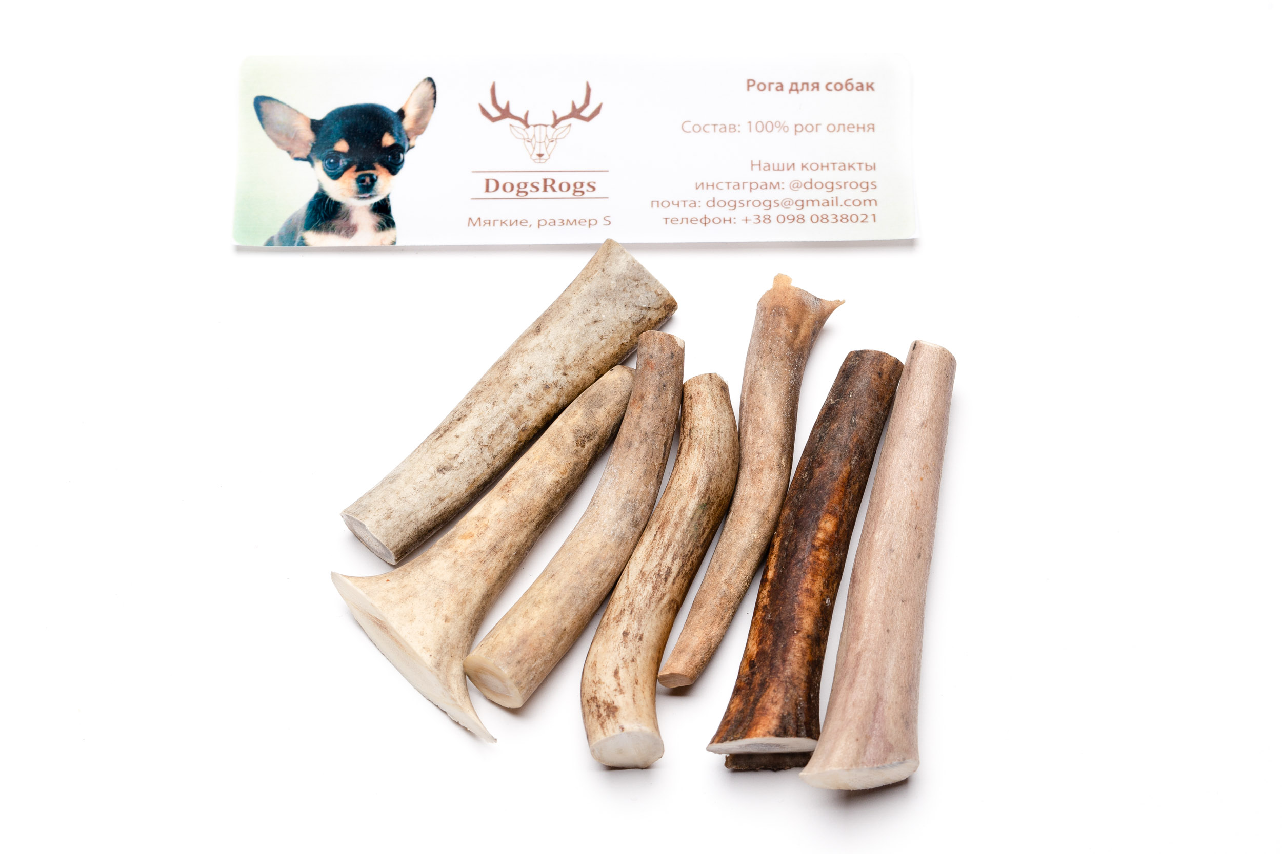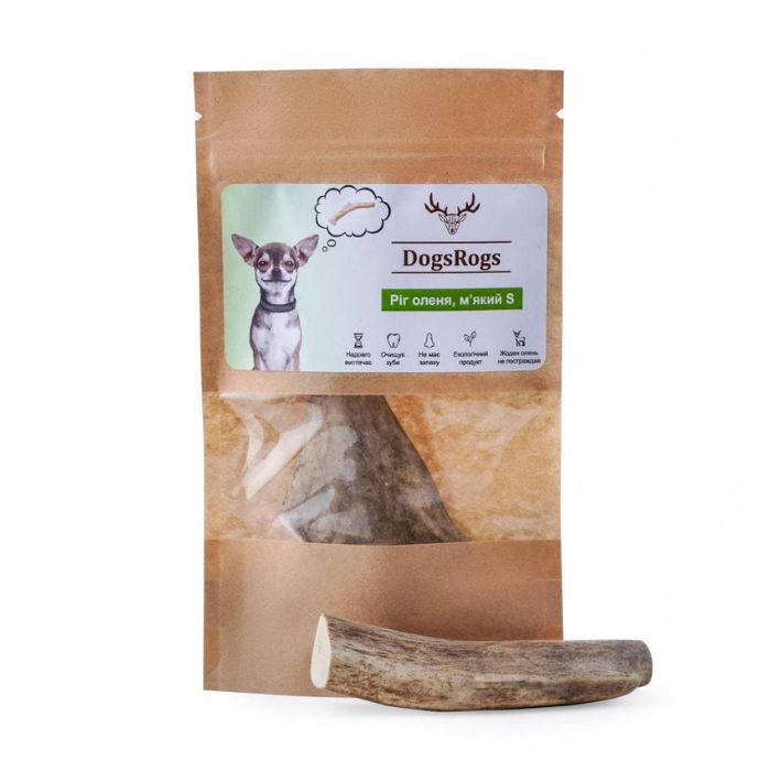 - М’які оленячі роги з розміром 10 см підходять собакам маленьких порід з вагою до 5 кг, а також цуценятам великих порід – з низьким і середнім рівнями гризучості;