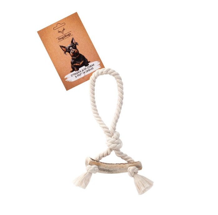 Натуральна жувальна іграшка для собак, виготовлена з оленячого рогу та бавовняного канату, стане улюбленою забавкою для вашого улюбленця. Це екологічні та безпечні вироби, що займуть собаку на тривалий час і не лише втішать цікавим заняттям, а й користю.