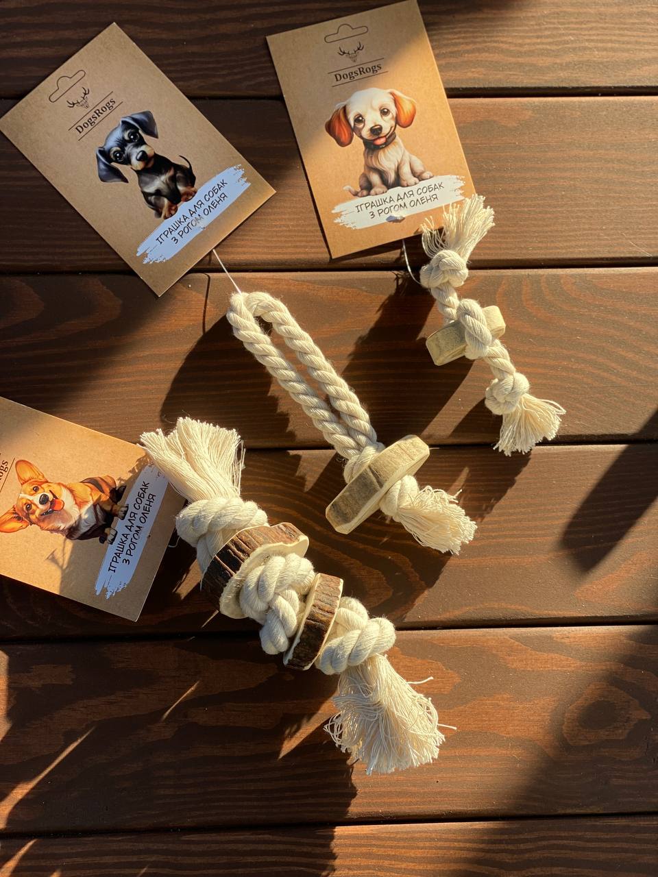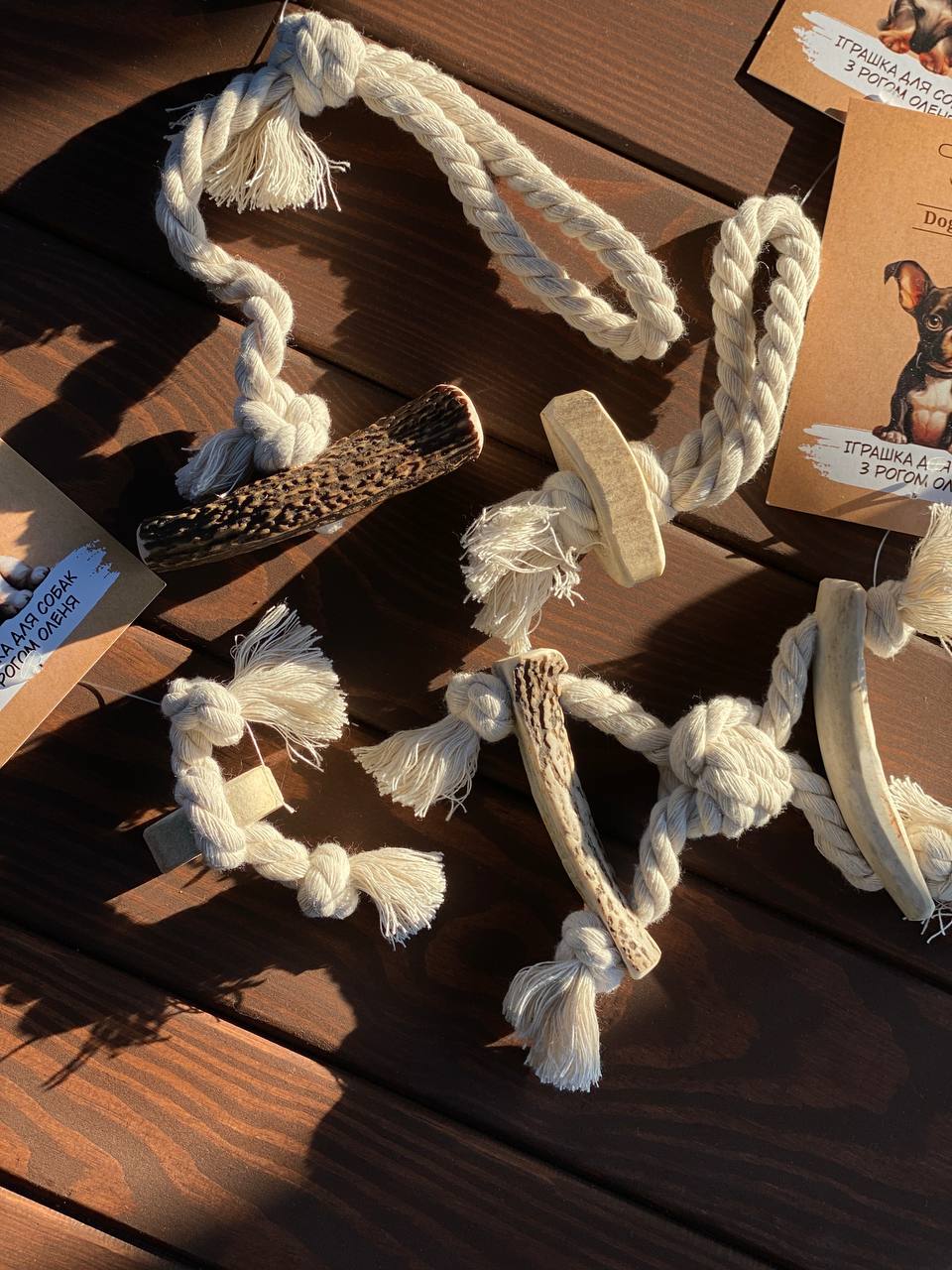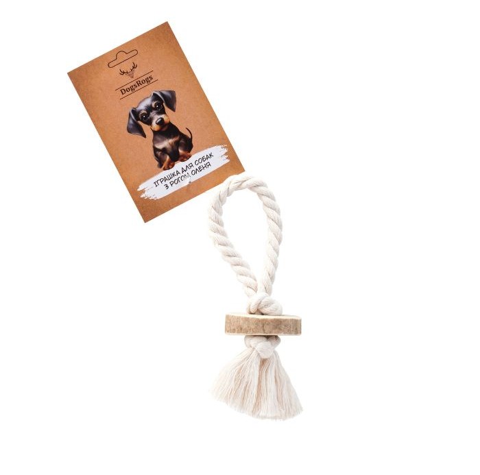 Натуральна жувальна іграшка для собак, виготовлена з оленячого рогу та бавовняного канату, стане улюбленою забавкою для вашого улюбленця. Це екологічні та безпечні вироби, що займуть собаку на тривалий час і не лише втішать цікавим заняттям, а й користю.
