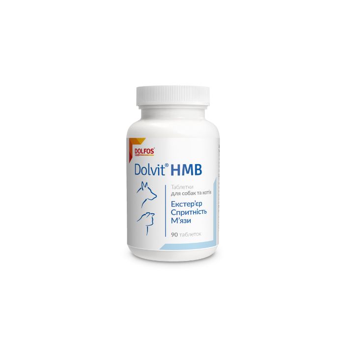 Комплексна вітамінно-мінеральна добавка Dolfos Dolvit HMB для собак і котів сприяє захисту організму улюбленця від втрати білка з м’язових волокон під час фізичних навантажень, стресу та в період реабілітації після важких захворювань різного походження.