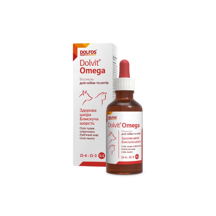 Дієтична добавка Dolfos Dolvit Omega створена для покращення якості та захисту шкіри, у випадках дерматозів і надмірної втрати шерстяного покриву. Рекомендується застосовувати з лікувально-профілактичною метою при дерматологічних проблемах (дерматити, алергії, грибкові інфекції та інше). Знижує запальні процеси, забезпечує блискучий вигляд шерсті та здоров'я шкіри.