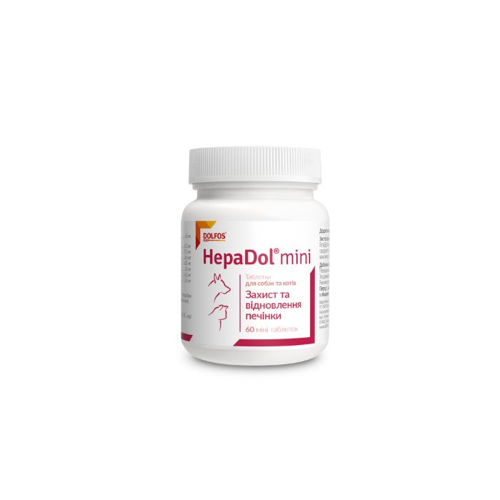Dolfos HepaDol Mini – додаткова дієтична добавка для захисту та відновлення функцій печінки в собак малих порід і кішок. Є комбінованим гепатопротектором, що має жовчогінні та спазмолітичні властивості.