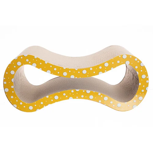 - Широка гофрована площина з усіх сторін забезпечить точіння кігтів протягом тривалого часу. Пухнасті із задоволенням граються лапками в отворах і дряпають кігтеточку з середини.