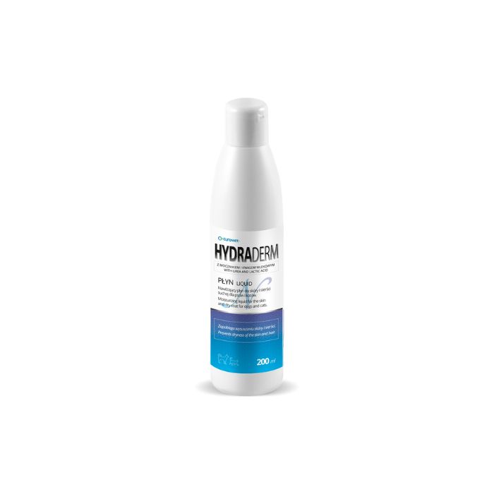Hydra-Derm N – це ветеринарна дермокосметика, що допомагає підтримувати водний і ліпідний баланс у разі сухості шкіри або лупи (сухої себореї). Засіб має властивості утримання вологи, що запобігає висиханню шкіри.