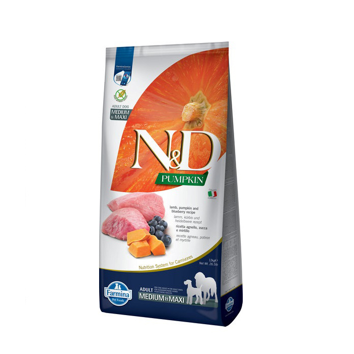 Farmina N&D Pumpkin GF Lamb&Blueberry Adult Medium&Maxi Беззерновий сухий корм з ягням, гарбузом і чорницею для собак середніх і великих порід, 12 кг