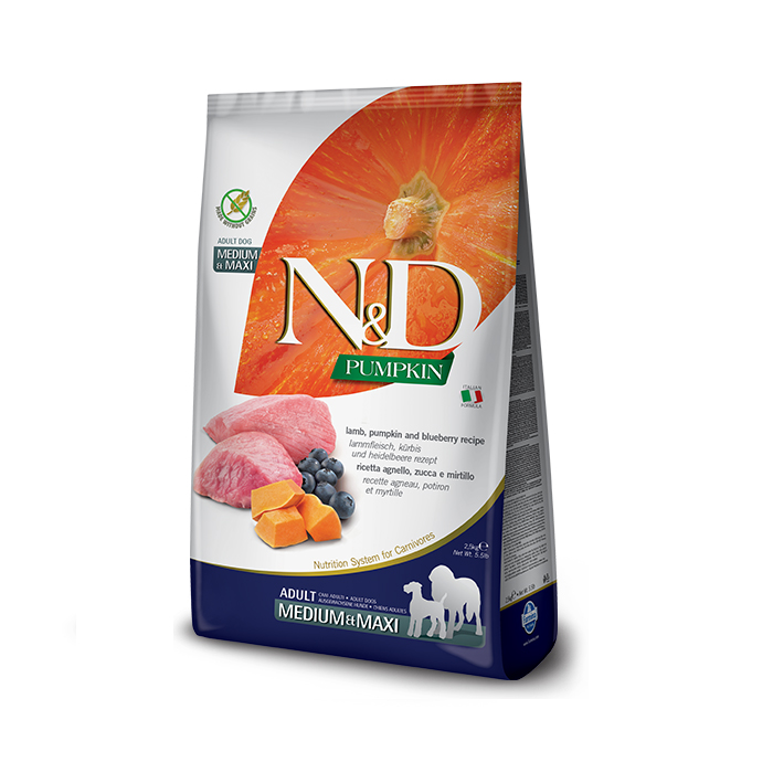 Farmina N&D Pumpkin GF Lamb&Blueberry Adult Medium&Maxi Беззерновий сухий корм з ягням, гарбузом і чорницею для собак середніх і великих порід, 2,5 кг