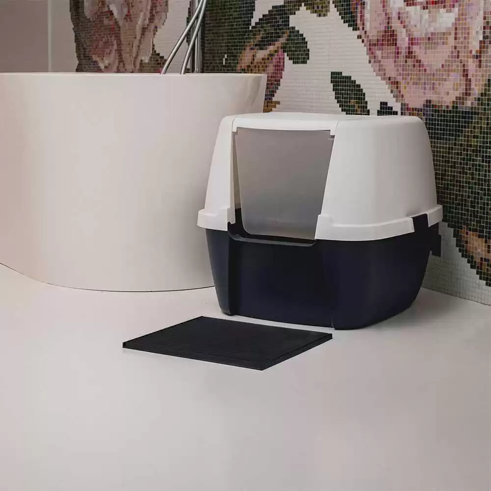 Спеціальний килимок для котячого туалету запобігатиме розповсюдженню бруду, який вихованець може випадково розносити лапами або під час характерних рухів риття в лотку.