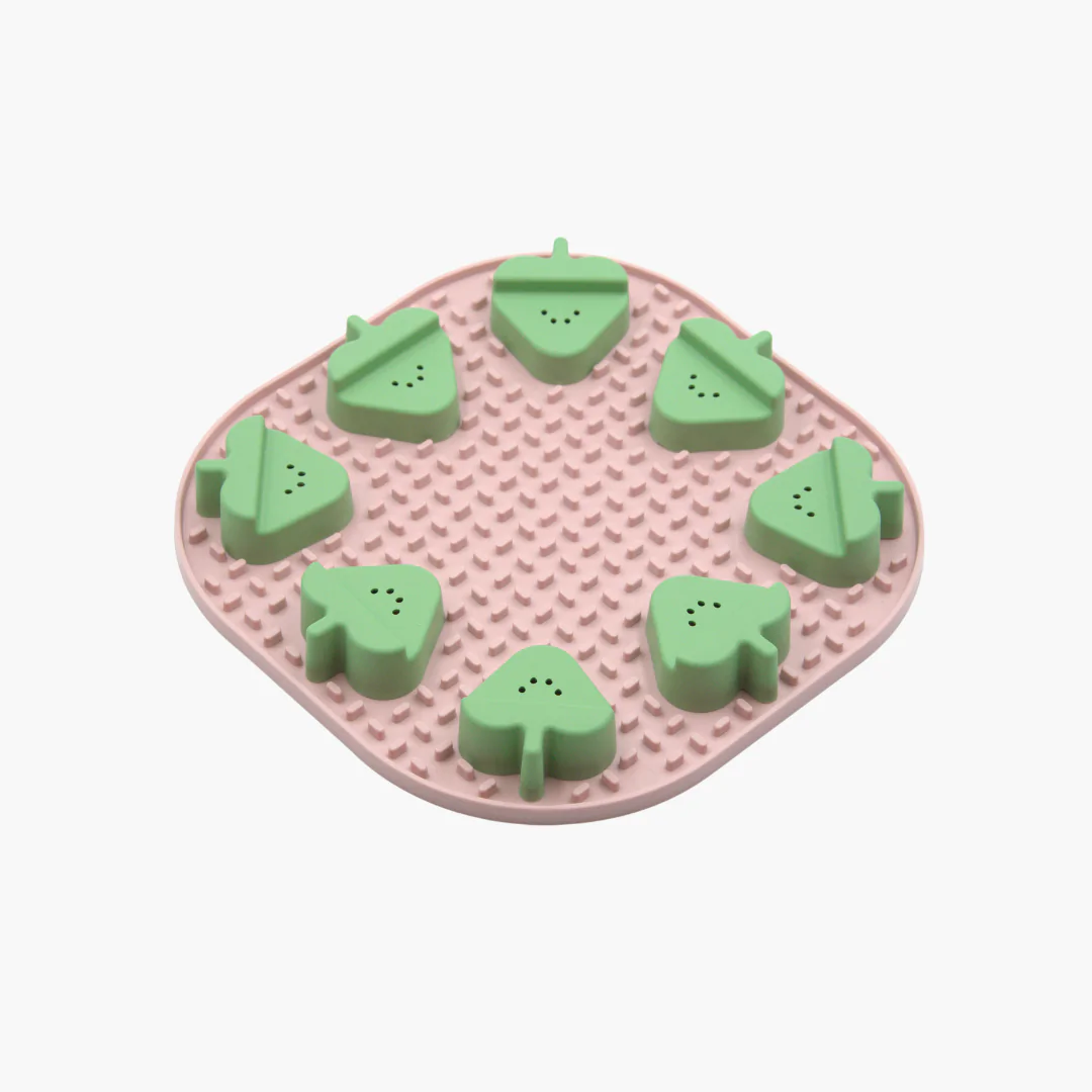 Виріб виготовлено з м’якого пластичного матеріалу, що добре прикріплюється до підлоги, завдяки чому не ковзає. Килимок для злизування ласощів і їжі має заспокійливий та розслабляючий ефект для домашніх тварин. А нюхові накладки відволікатимуть пухнастого.