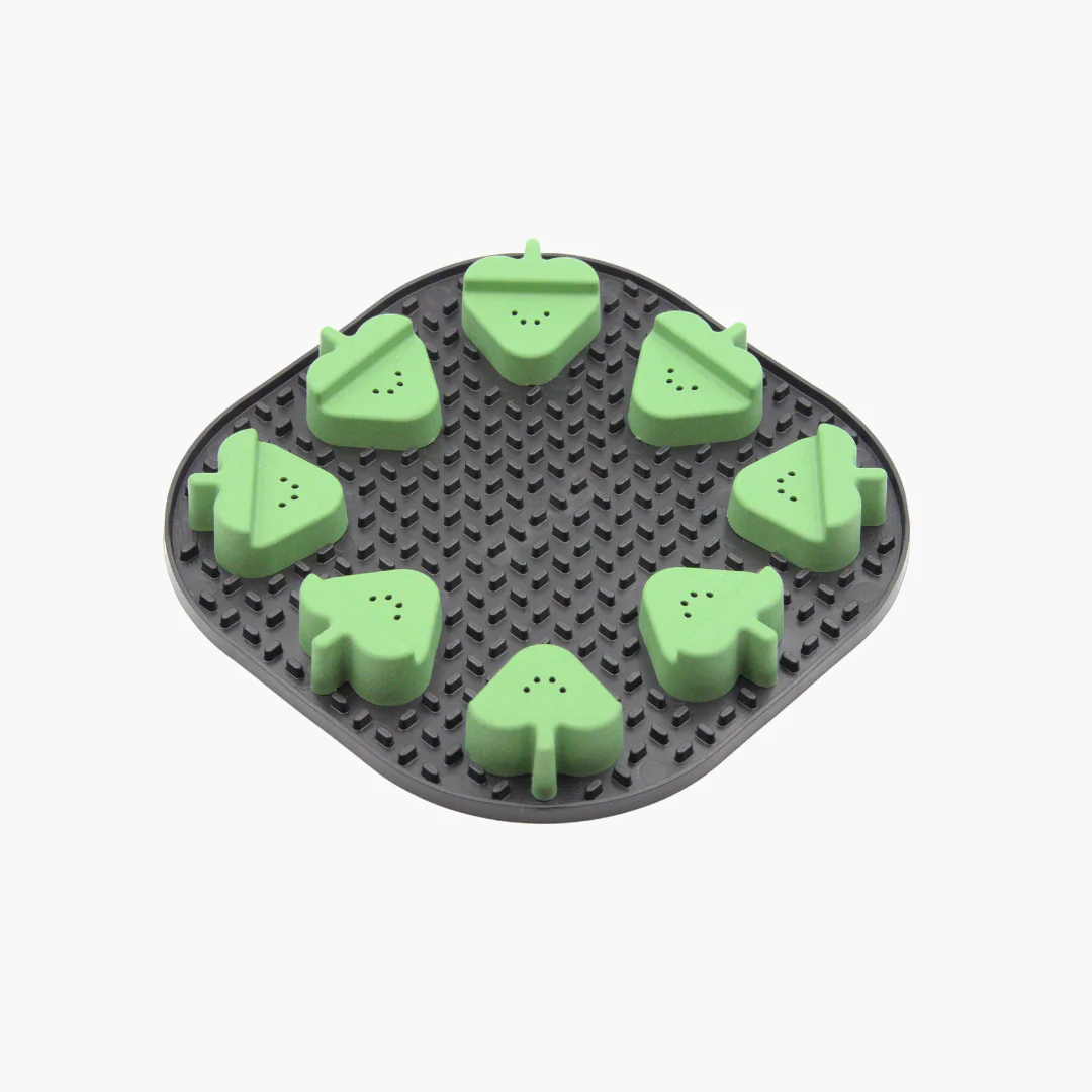 Спеціальний набір для справжніх нишпорок: килимок для злизування ласощів та іжі з нюховими накладками, під якими теж можна сховати смачненьке. Завдяки рельєфним елементам килимок уповільнює процес споживання їжі, зручний і комфортний для вашого вихованця.