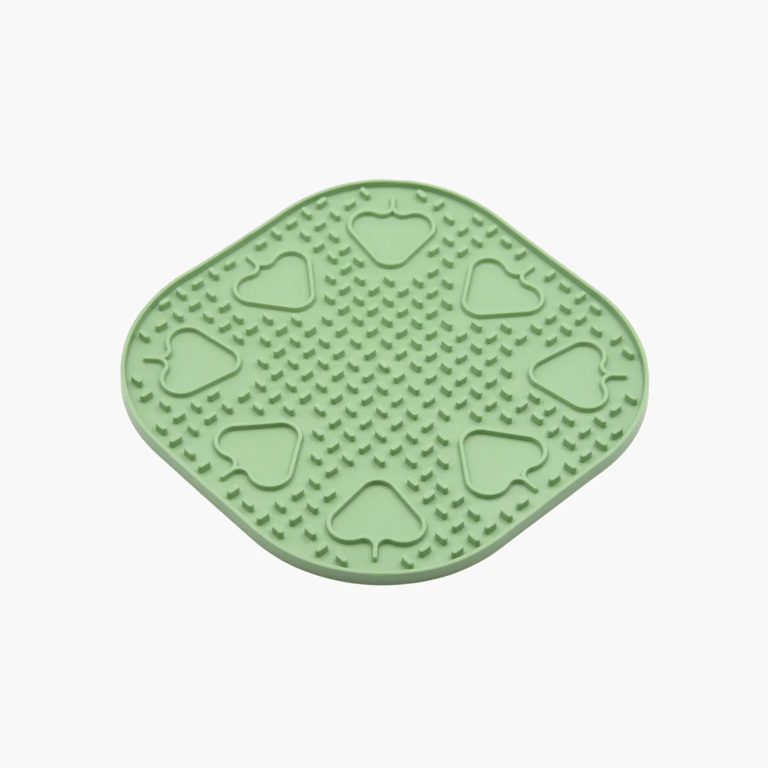 Виріб виготовлено з м’якого пластичного матеріалу, що добре прикріплюється до підлоги, завдяки чому не ковзає. Килимок для злизування ласощів і їжі має заспокійливий та розслабляючий ефект для домашніх тварин.