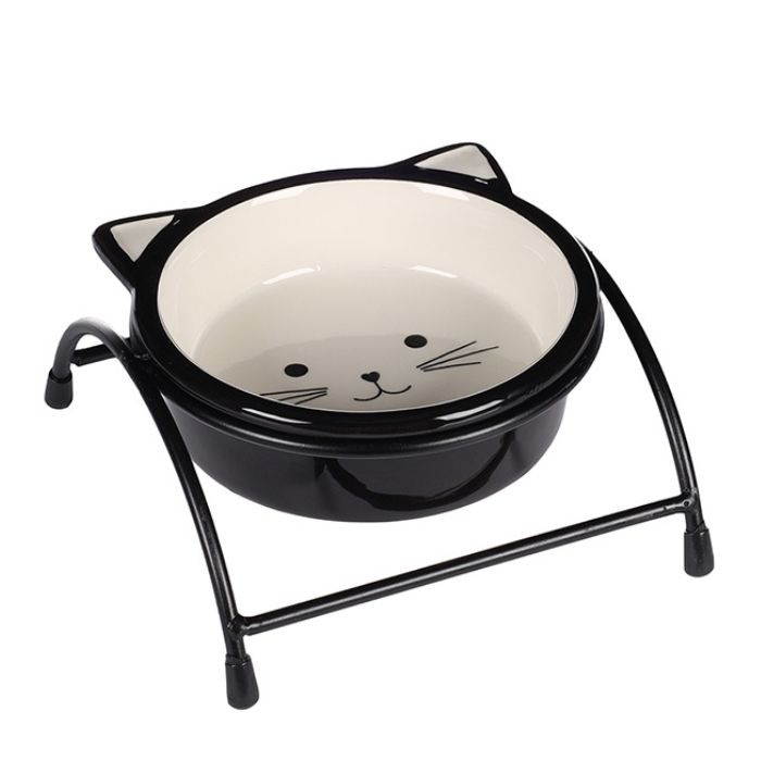 - Зручна висота: металева підставка піднімає миску на 3 см від підлоги, дозволяючи коту їсти або пити без напруження шиї та спини, що особливо важливо для літніх котів або тварин із проблемами суглобів;