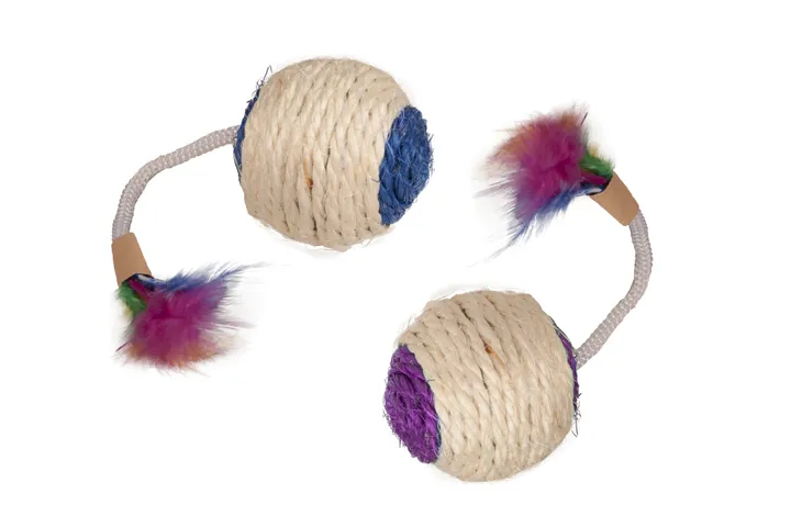 М’ячики з міцною сизалевою ниткою підходять для дряпання та приваблюють кішок завдяки котячій м'яті.