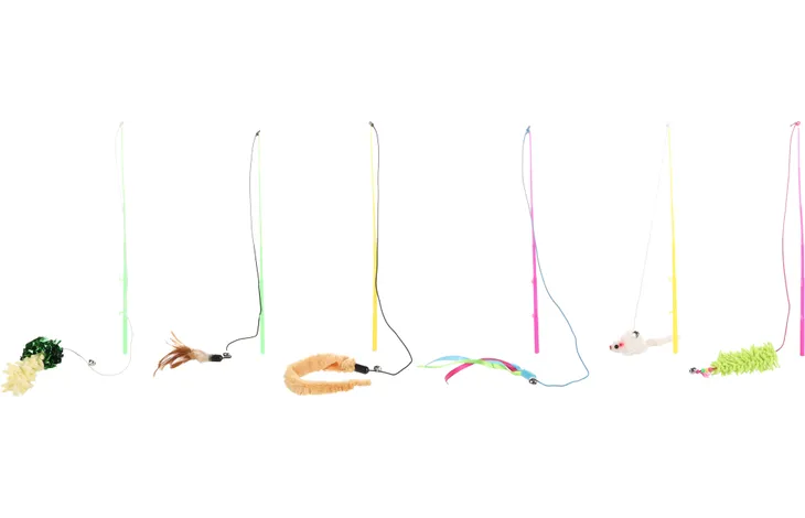 Іграшка на вудилищі додає додатковий виклик, адже муркотливому захочеться впіймати яскраве текстильне звірятко. Цією іграшкою можна годинами відволікати котів, залучаючи до активної гри та пустощів, нагадуючи про мисливські інстинкти.