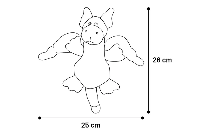 Виготовлений з м'якого текстилю, оснащений пищалкою та звуком, що хрумтить, цей дракончик подарує години веселощів під час гри.