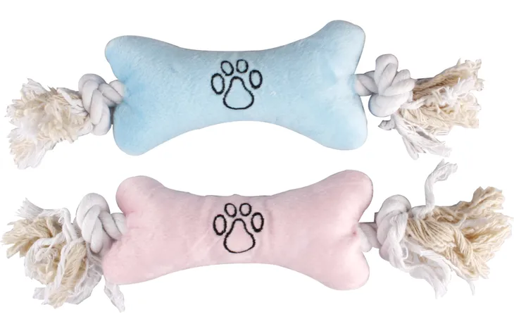 Плюшеві кісточки з мотузяними ручками – м’які та безпечні для маленьких улюбленців, їх можна перетягувати та покусувати, щоб тренувати жувальні рухи та піклуватися про здоров’я ясен.