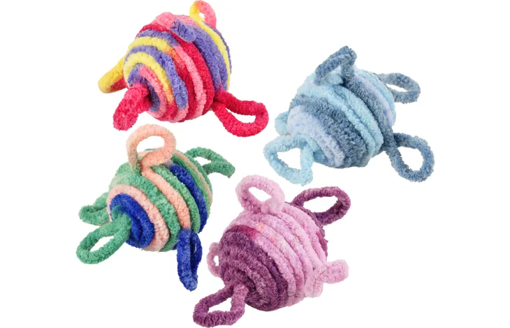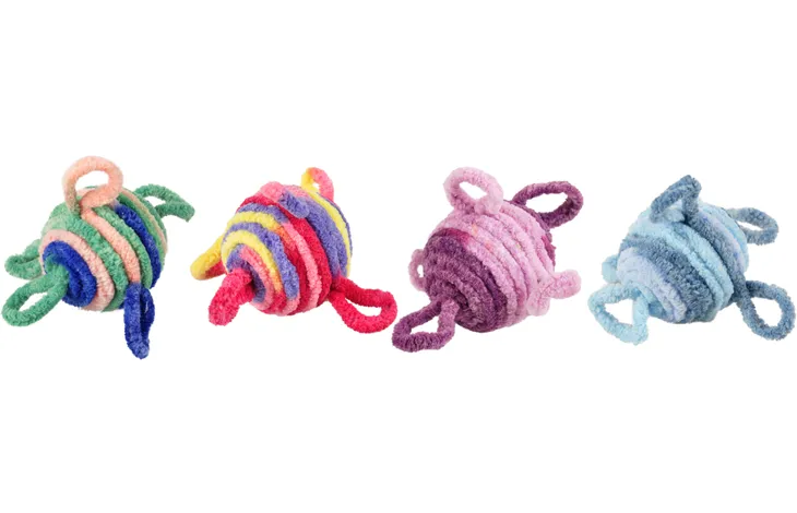 Немовби улюблені клубочки вовни, які так полюбляють котики, ці потішні м’ячики з додатковим брязкальцем усередині одразу привернуть увагу вашого кота. Їх зручно приносити, затиснувши в зубах, катати підлогою, забирати з собою в найпотаємніші та улюблені місця вдома і брати в подорожі, щоб гратися з улюбленцем будь-де.
