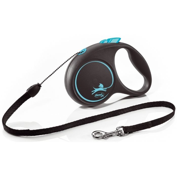 Flexi Black Design M Повідець-рулетка для собак вагою до 20 кг, трос, 5 м, синя